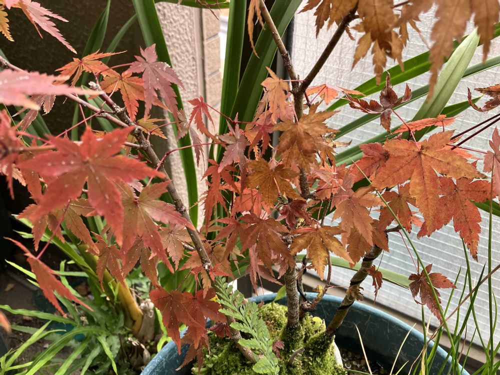 紅葉した盆栽のモミジ