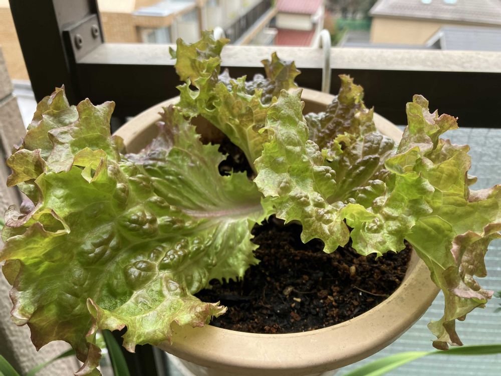 鉢植えで育てているレタス