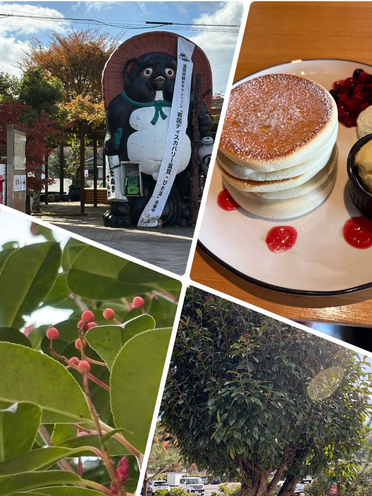2️⃣信楽の駅近くだったのて、電話ボックスのある大きな狸さんや赤い実のなったカナメモチもパチリ📱