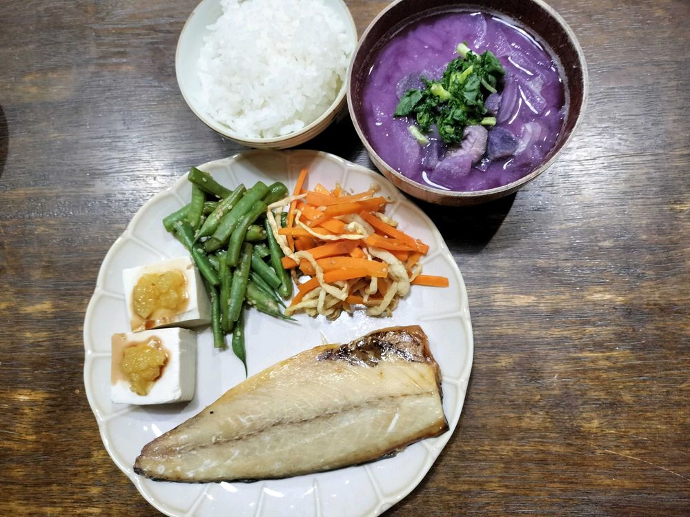 紫色の汁物の秘密は、紫芋だったのですね〜甘くて美味しい味噌汁だったことでしょう🤗