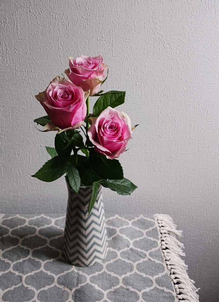 3本は花瓶に。リビングで楽しんでます。こうして撮るとなんか昭和っぽい😅…でも可愛い。