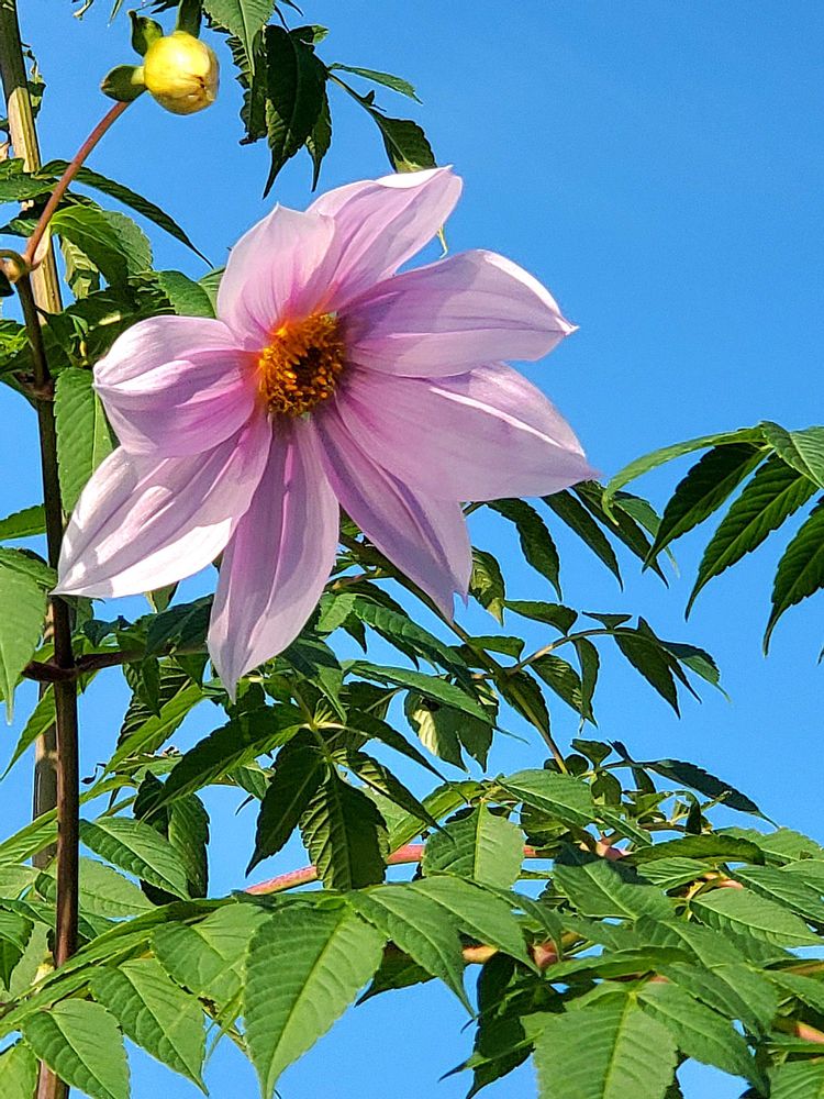 皇帝ダリアさん、気持ちのいい青空を気持ち良さそうに咲き誇ってましたよ🤗