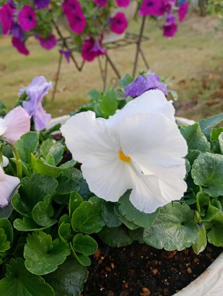 この白いパンジーは少し花弁がヒラヒラしています😻