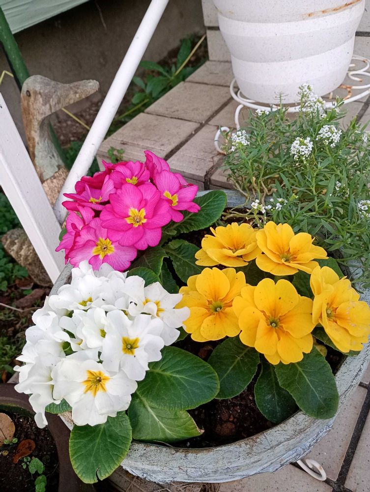 私はいつもジュリアンはジュリアンで、何株か一緒に植えています🥰今回の海鮮丼(ジュリアン丼)にはアリッサムが友情出演してくれていますが、その子はこの鉢の中でこぼれ種で育ったのでそのまま利用しました🤗