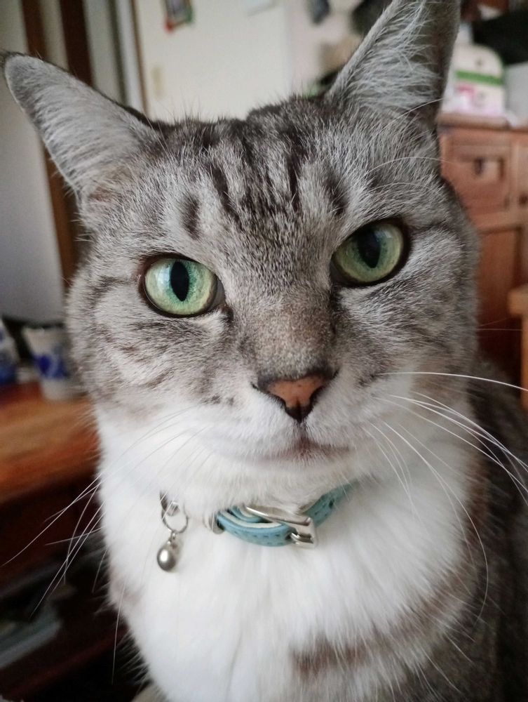 あずちゃんは至近距離でガン見してくるんですよ😅目と目が合うとゴロゴロ言うんです〜😻理由が知りたい…