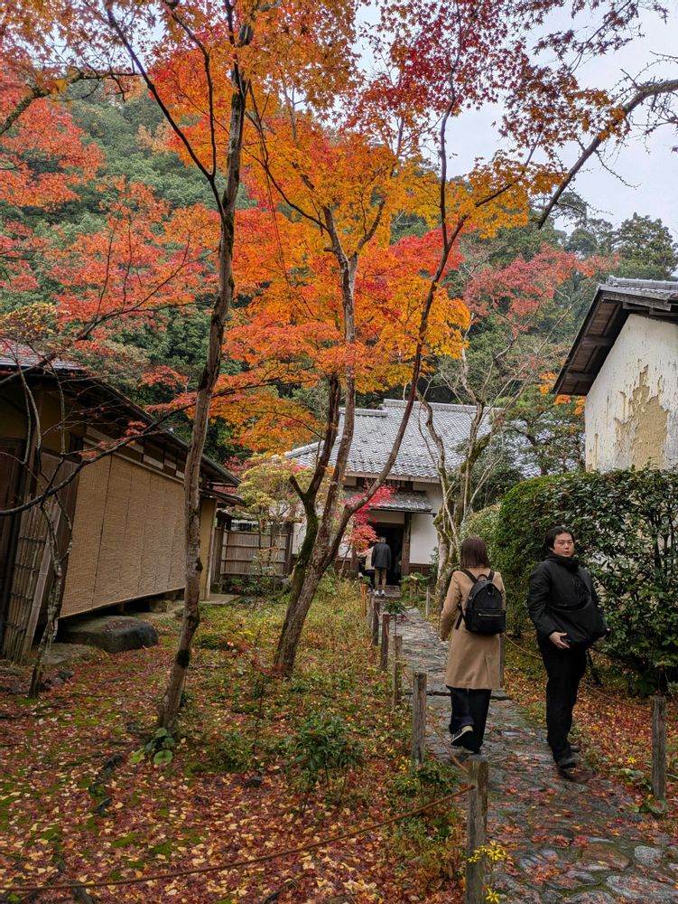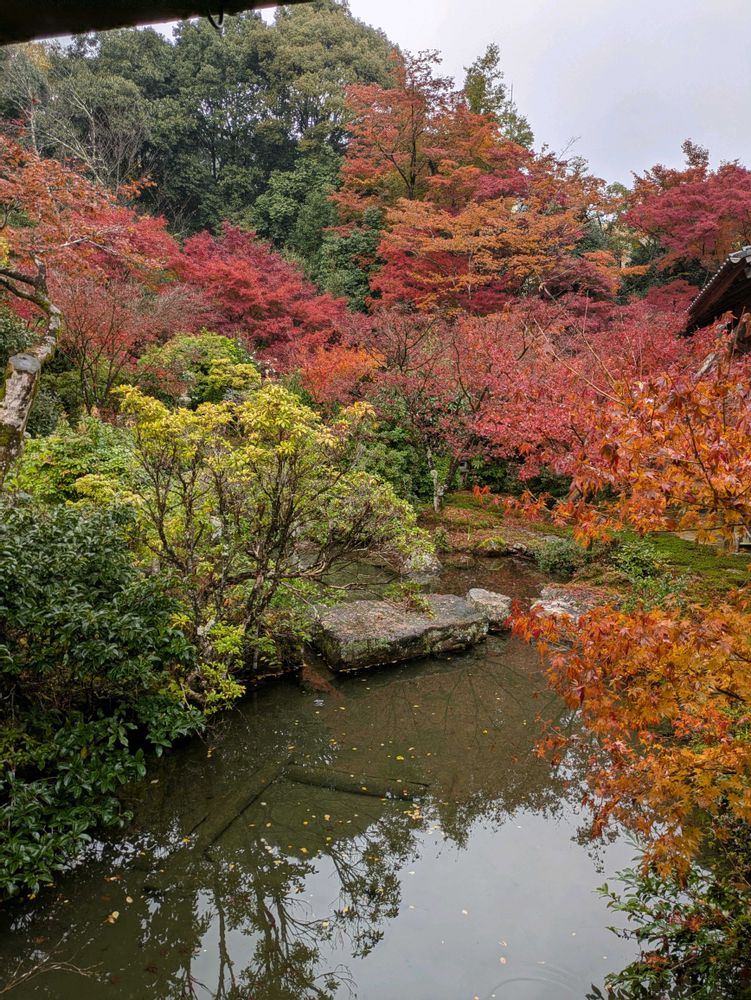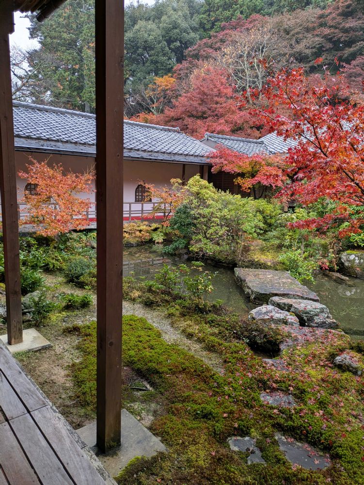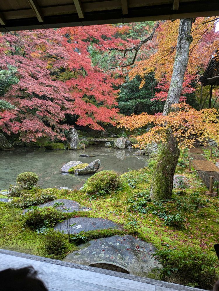 昨日のツアーです。岩倉実相院 お庭の前の山、高さのある紅葉が美しい。