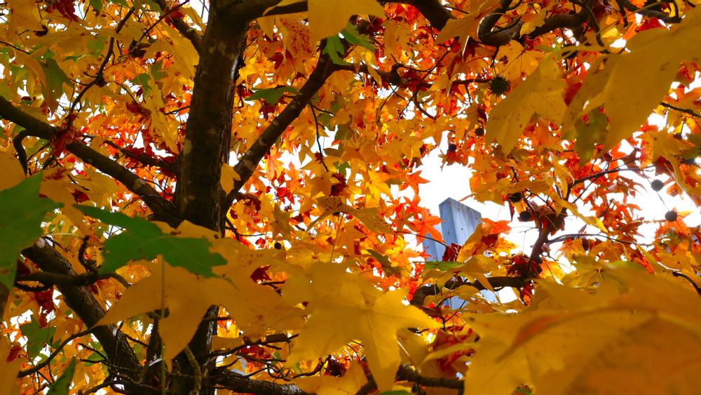 緑🟢の中に黄葉が少し