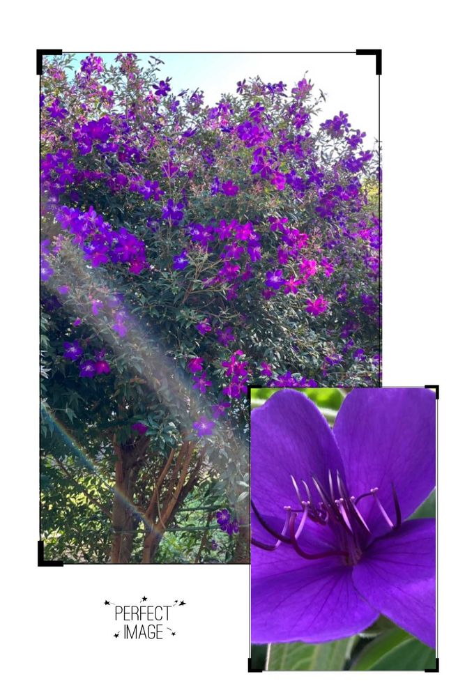 シコンノボタンはブラジル原産のノボタン科シコンノボタン属の植物です。高さは1mから3mになり、直立する常緑の半低木です。名前の由来は「紫紺色の野牡丹」で、アジアを中心に分布する別属のノボタンより、花色が濃い紫色であることを意味しています。花は枝の枝先につき、直径7cmほどの5弁花で1日花です。短日で開花しやすく、秋から初冬にかけて開花するといわれています。(ネットより)