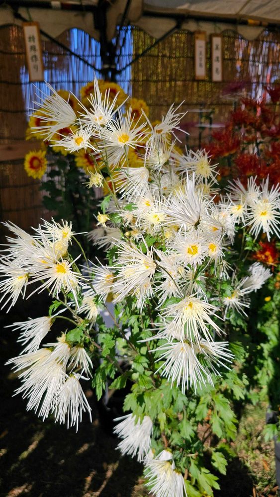 菊展に有った繊細な花びらの菊