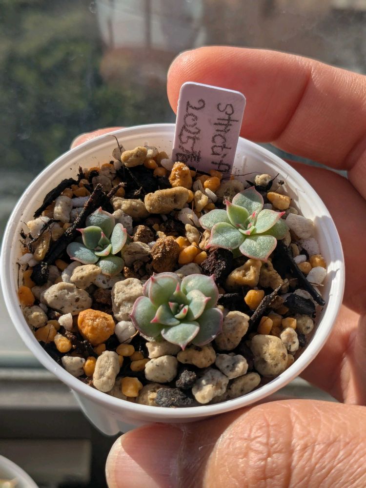 2024.07.01 突如多肉植物に興味を持ちました。 2025.07.01 無事(?)2年生に進級。 スペースもないのに実生に手を出し、芽が出た、本葉が出たと一喜一憂しています。綺麗系を綺麗に育てるのが目標です🤣