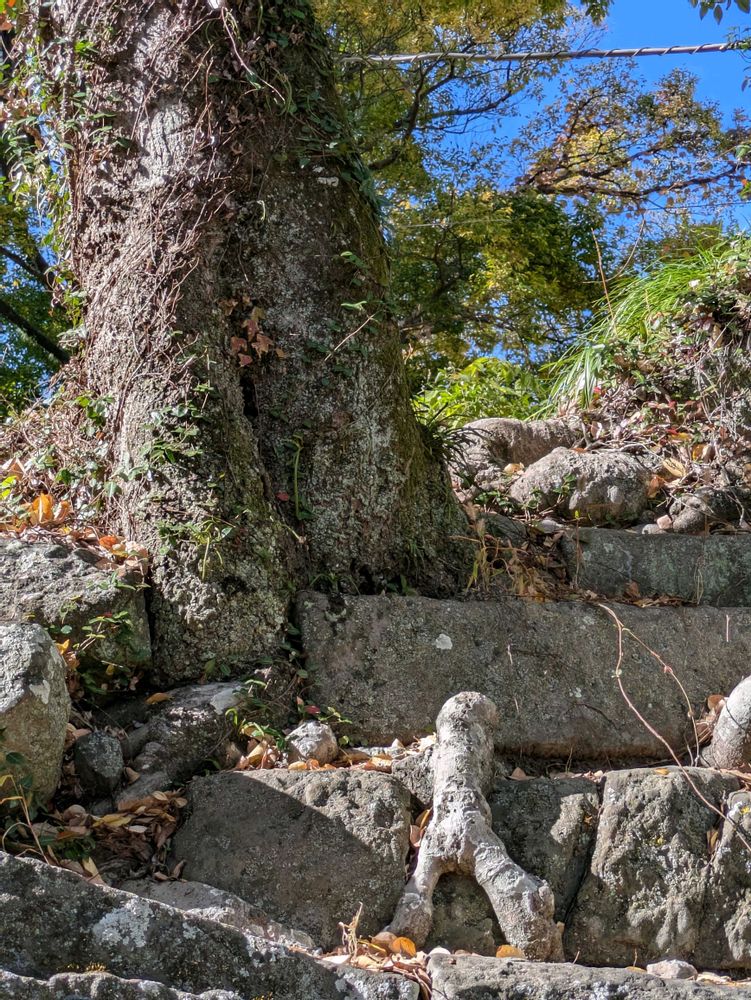小さな人の後ろ姿のように見えるエノキ(榎)の根っこ