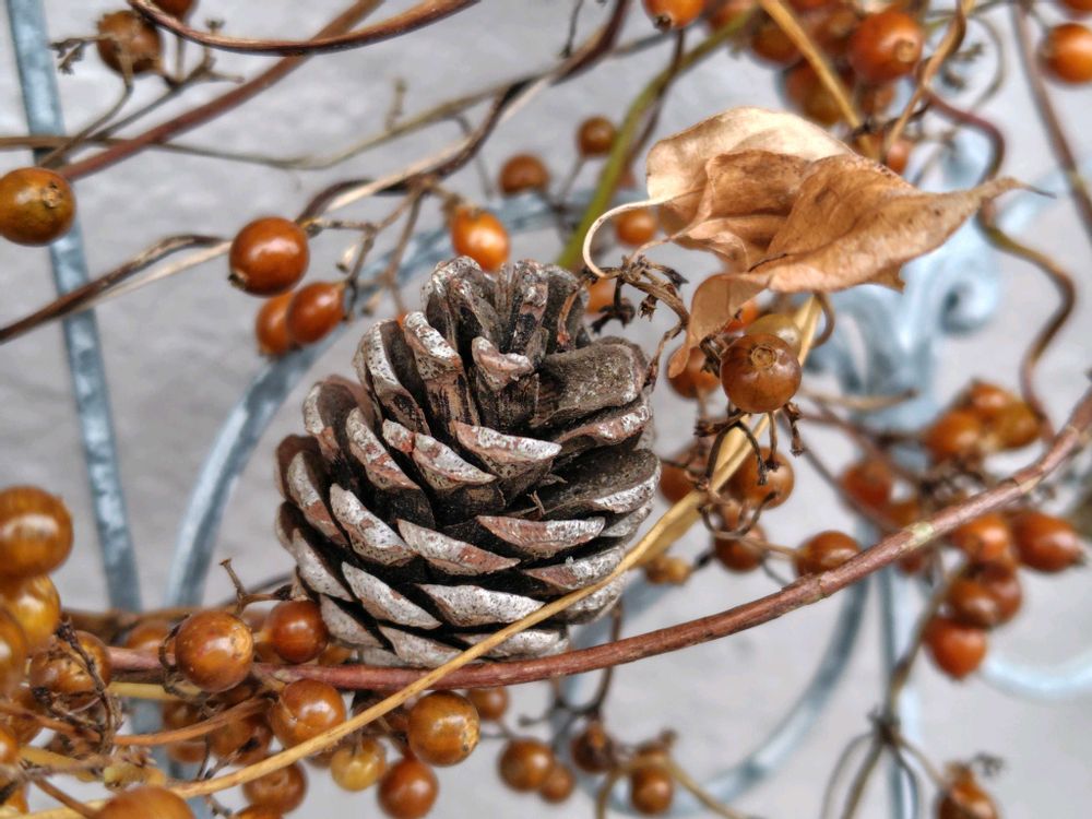 落ちていた松ぼっくりとクルクルしただけリース😆