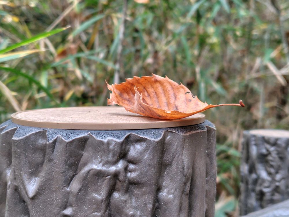 ④柵の上にハラリとオレンジの葉っぱ