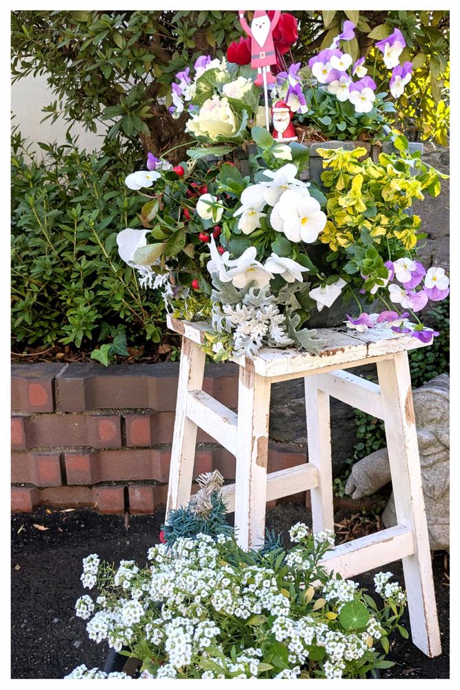 クリスマスはいくつになってもWAKUWAKUします クリスマス前の庭にサンタさんを並べて楽しんでいます