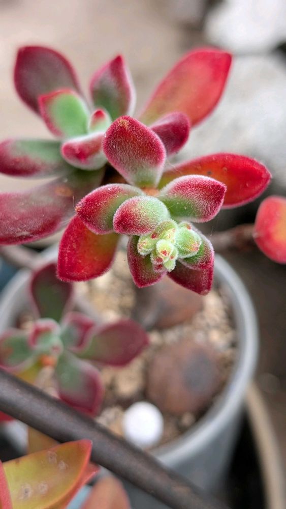 多肉はほとんど片付けたけど、こちらはまだ外組。ハムシーも外で真っ赤になってきました。