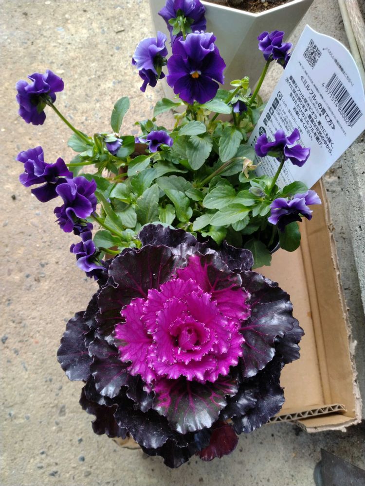 💜ミルフィルと葉牡丹😍どの鉢に入れようか思案中です〜😊