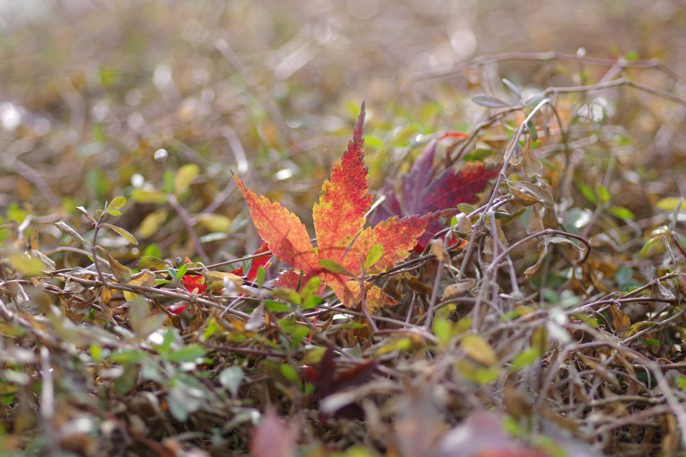 ヒメイワダレソウの上に落ちた紅葉🍁