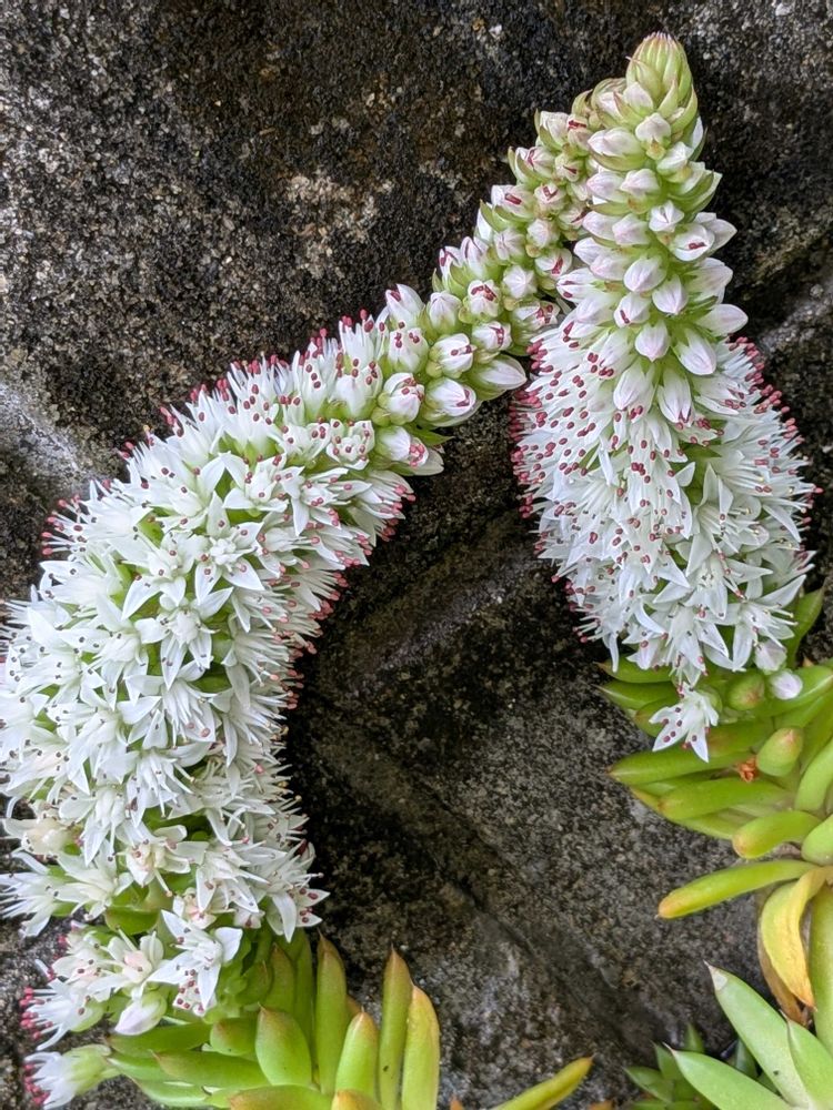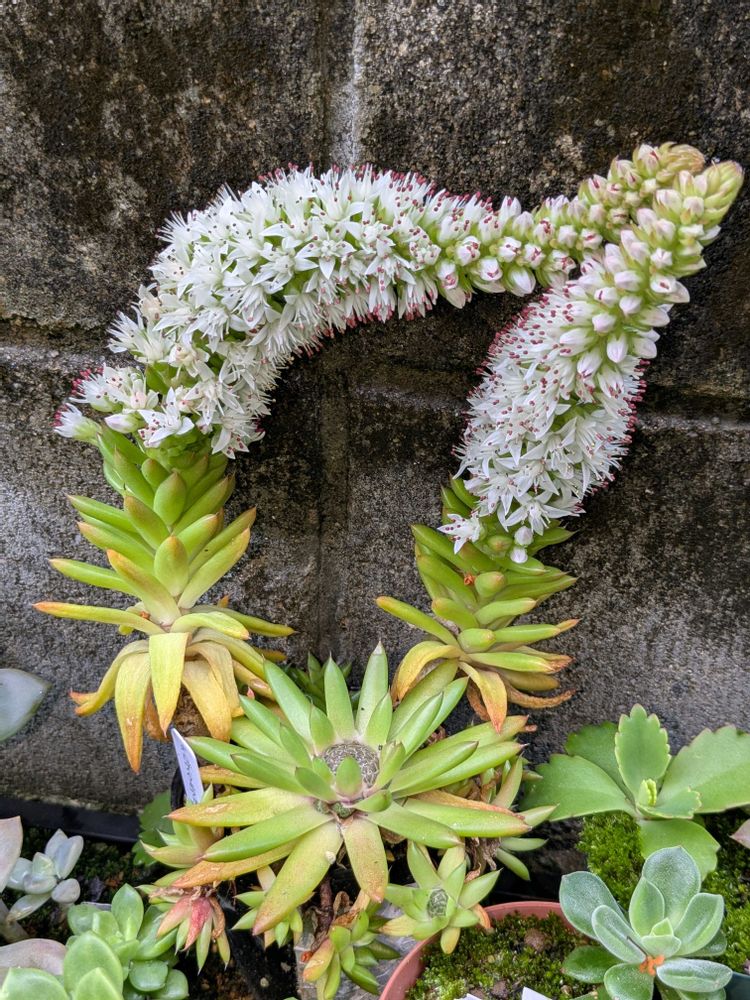 ③④爪蓮華さん❣️花芽タワーが重過ぎて自立が難しくなり、居場所をブロック塀の近くに移動したよ〜🍀(^^ゞ