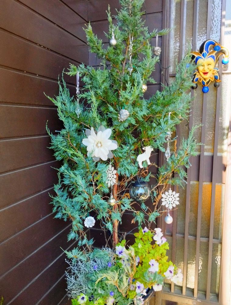 Xmasツリーとペチュニアアマゾナスの共演です。今年は暖かいのでまだ咲いてます🪴
