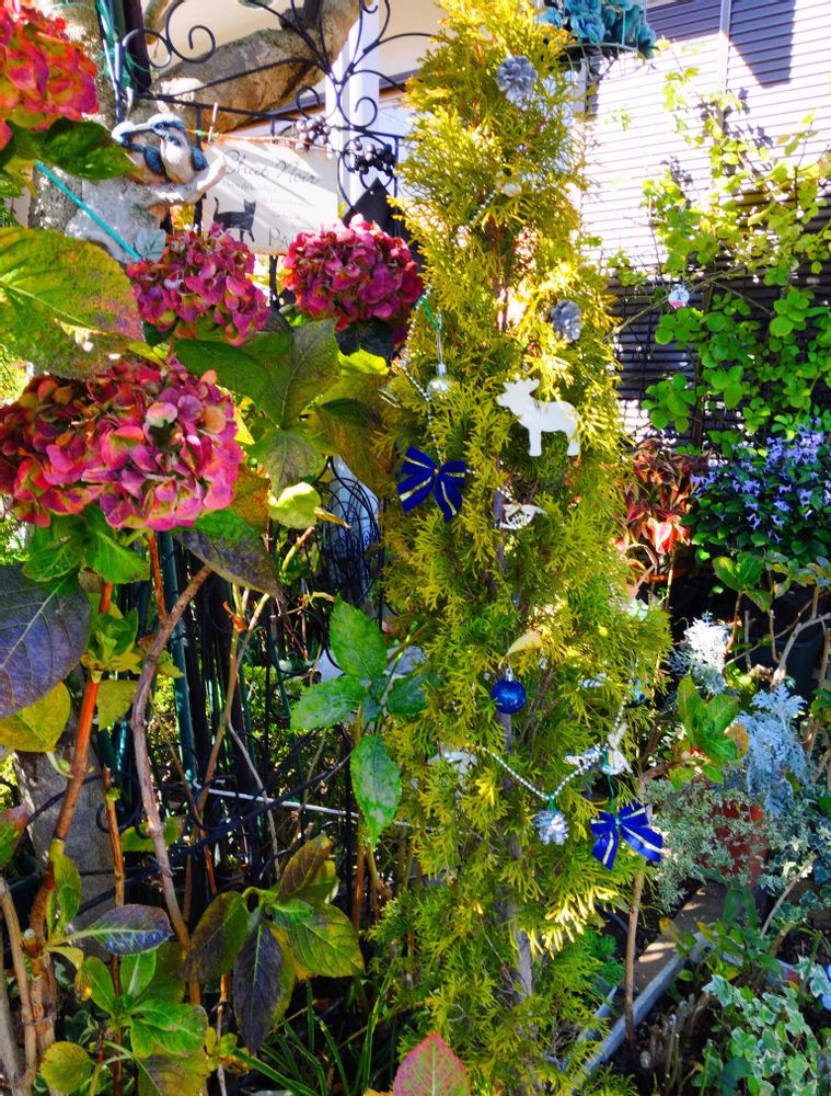 秋色紫陽花とXmasツリーの共演で撮影しましたが色合いが合わないので12月になったら紫陽花はカットしてドライフラワーにして室内に飾りる予定です。