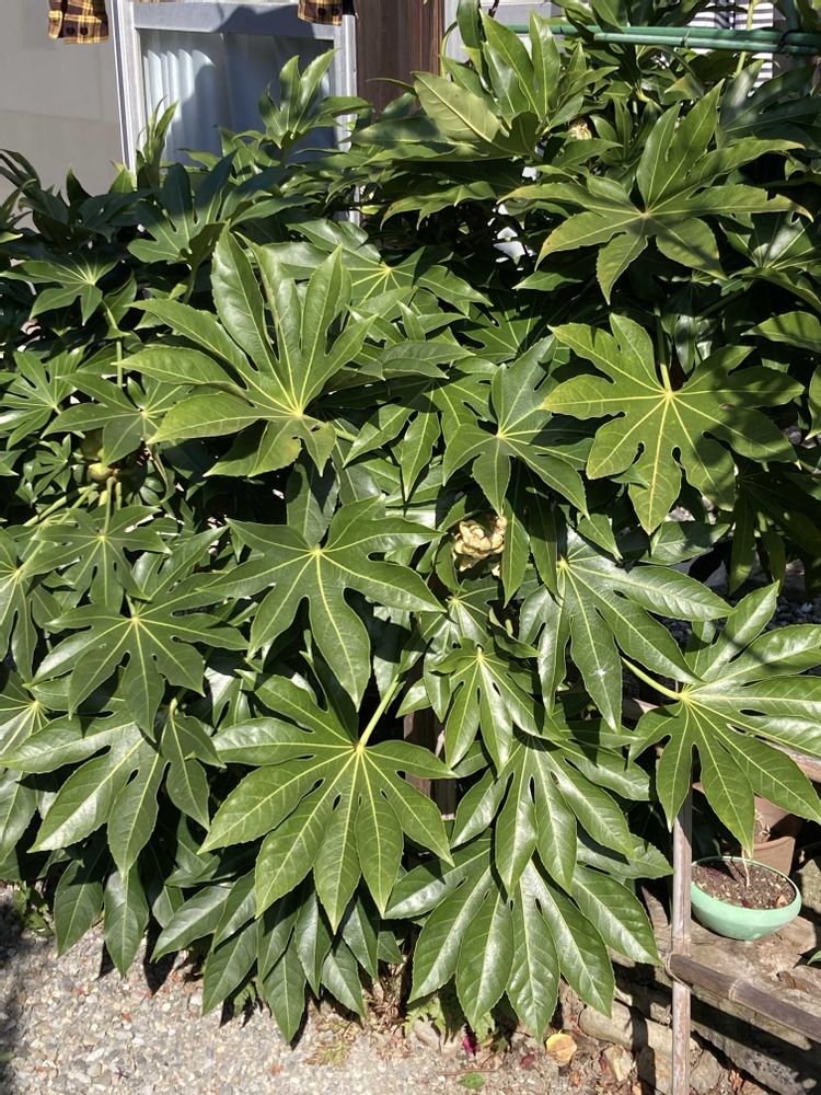 庭のヤツデの花