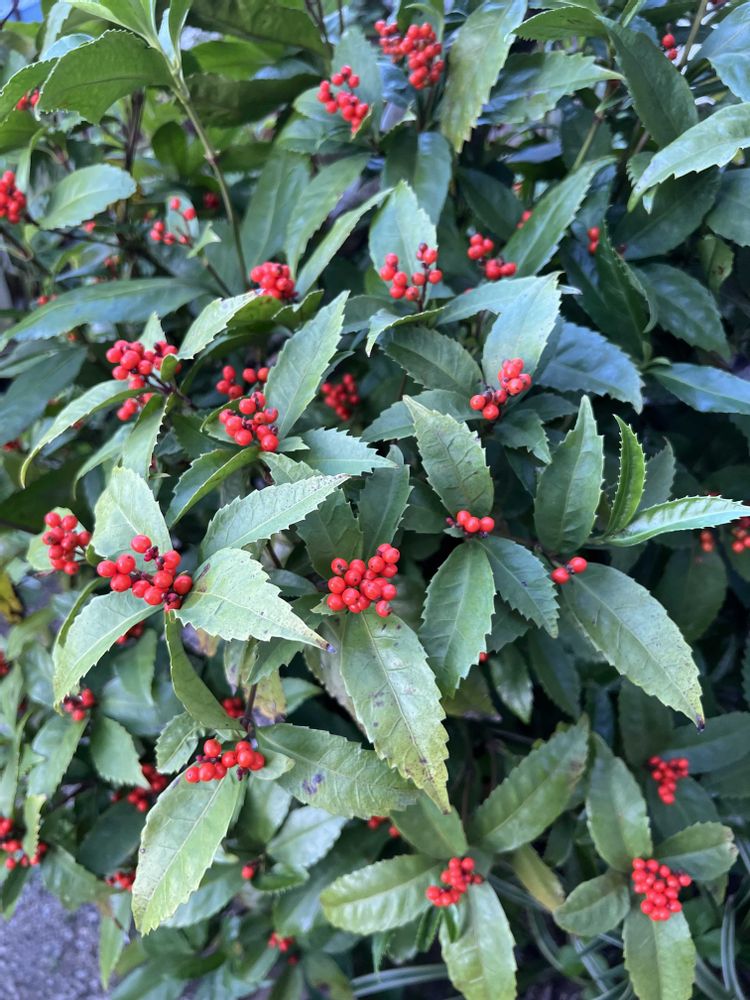 おはようございます☺️先日鎌倉に行って来ました キレイな紅葉始まってましたよ🍁 裏に植えてある千両にいっぱい🈵可愛い赤い実が付きましたよ🤘