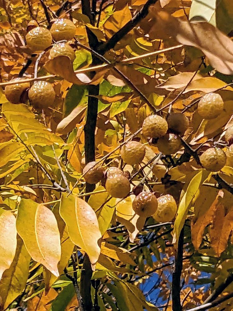 ムクロジの実は、葉っぱと同じような色になってたから、目を凝らして探しましたよ。
