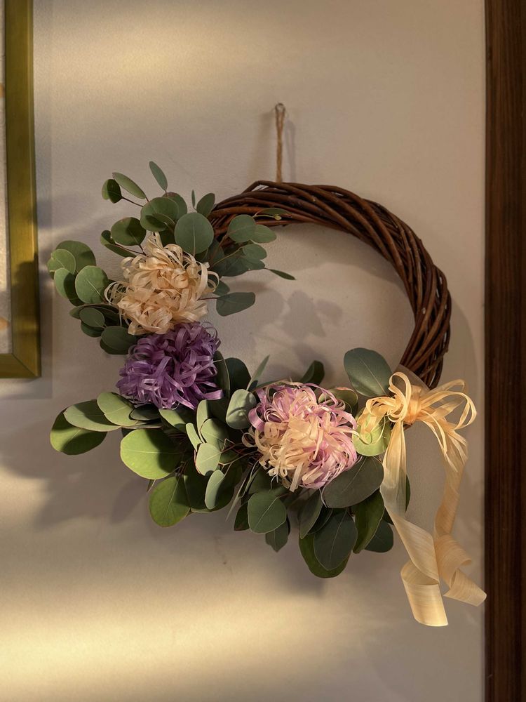 カンナ屑で作ったフラワーボール,リース,マイガーデンの投稿画像