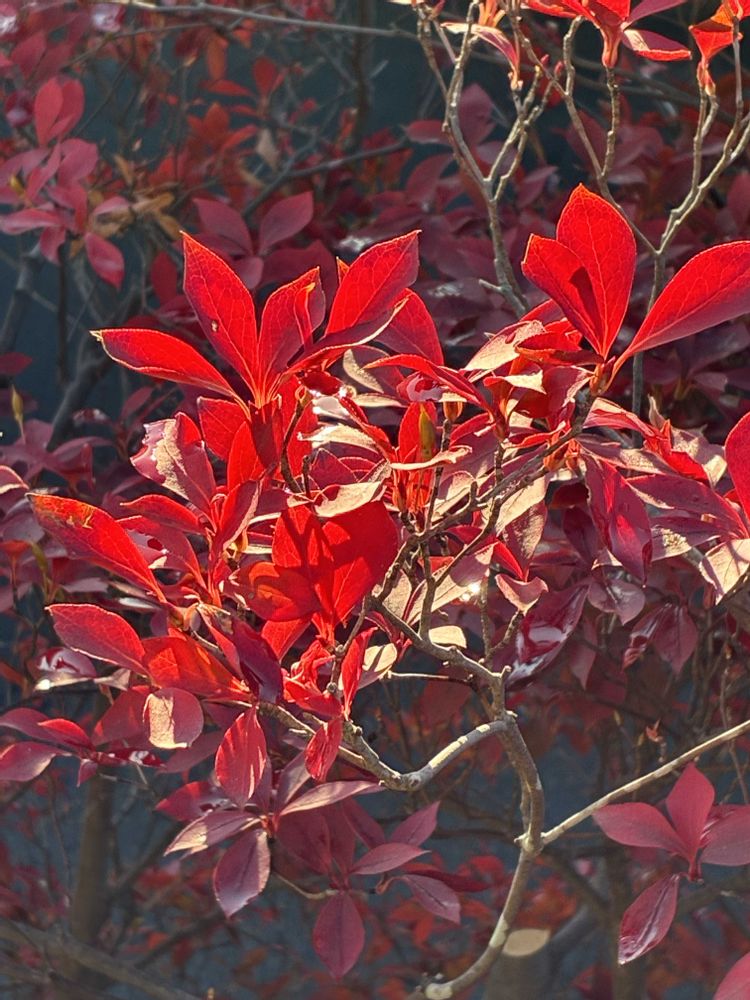 庭のドウダンツツジの紅葉が見頃になりました。チェリーセージとウィンターコスモスもパチリ。