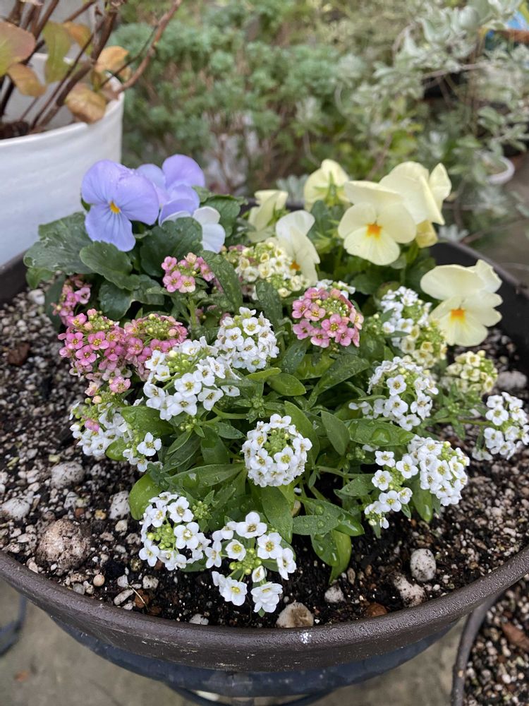 3株とも同じくらいの大きさだけどこの画像だとアリッサムが大きく見える不思議🥰