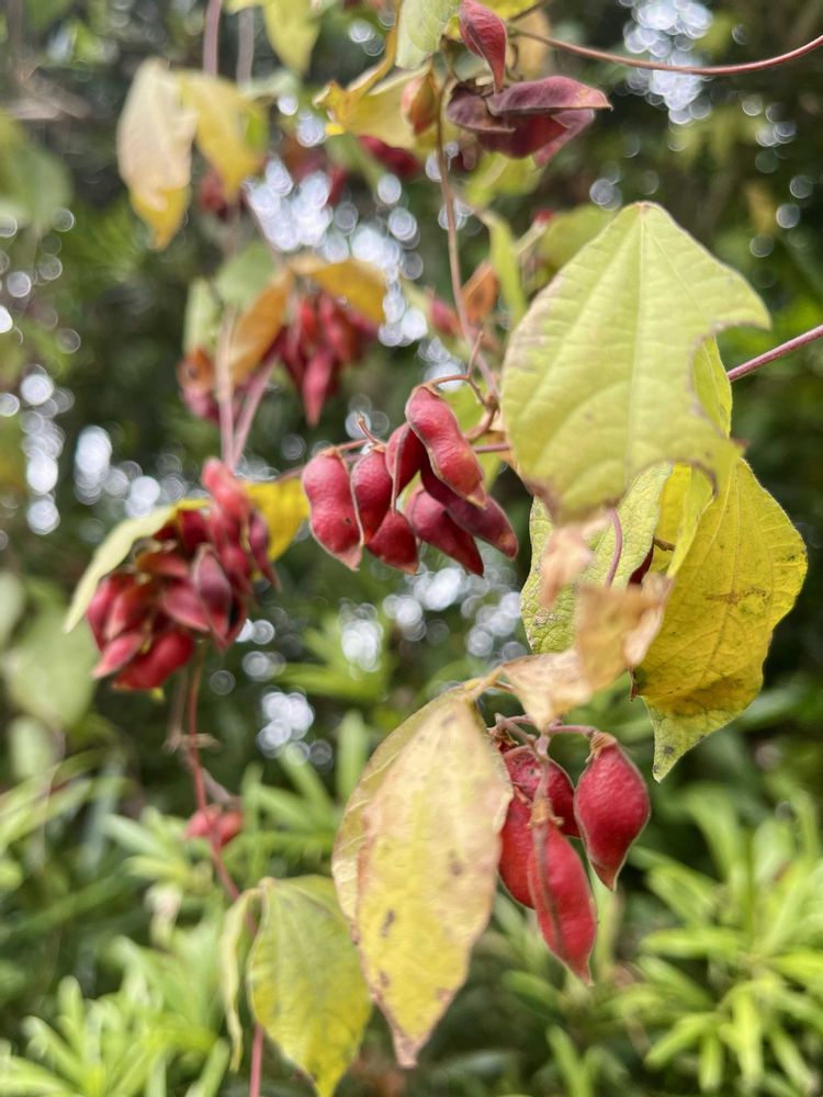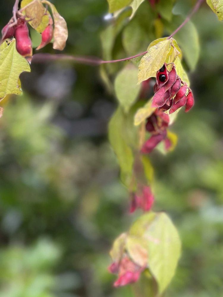 朱色の鞘と艶々の黒い実が目を惹きます✨✨