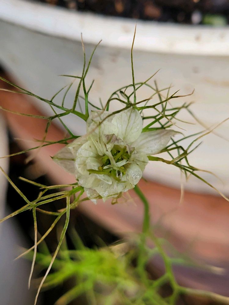 ニゲラ 季節はずれのこぼれ種から咲いています。かわいい大好きなニゲラ💓