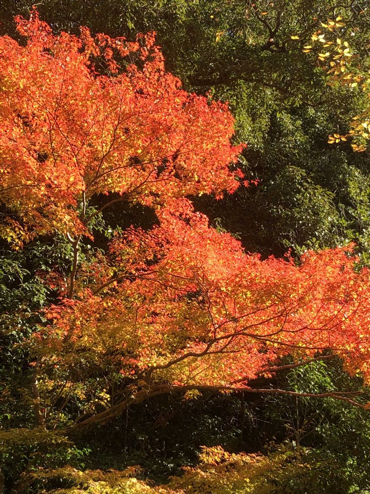 昨年11月28日、大阪府箕面公園にて、今日のお花「ネリネ」と紅葉🍁をパチリ!🌸🌿😊😄🌞✌️