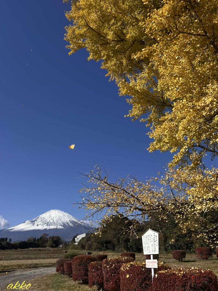 🗻の上を悠々とイチョウが舞ってる🍃