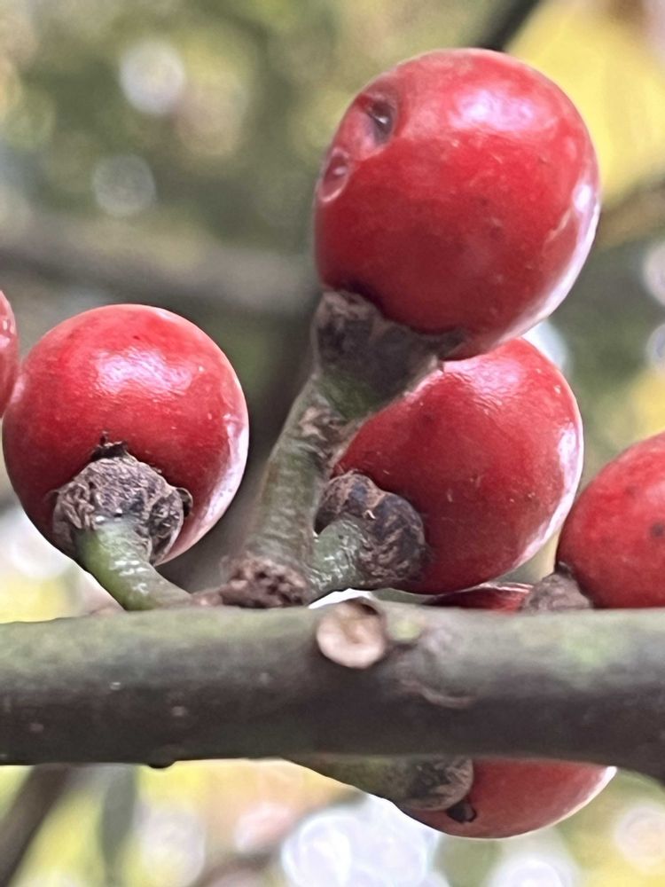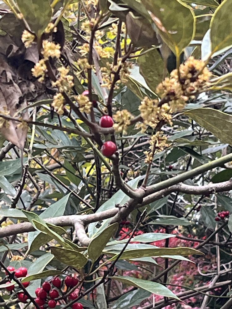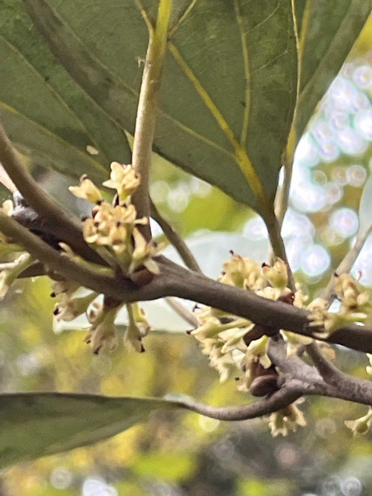 かわいいらしいチャノキとお花と果実が同時に見られるシロダモです