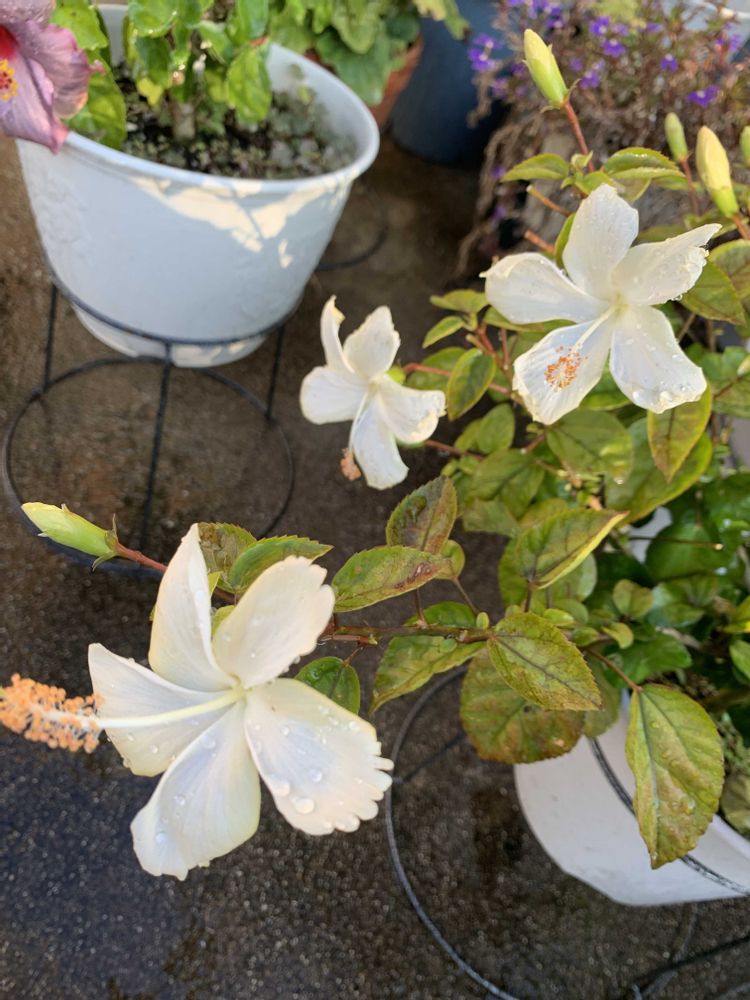 大好きな白🤍い花だぁ⸜🙌🏻⸝🤍ハイビスカスさんお外で頑張ってるなぁ👏🏻菊のピンク😊可愛いけどなぁ😗真冬の寒さが来たら、どんな色になるん⁉️🤔𓈒𓂂𓏸