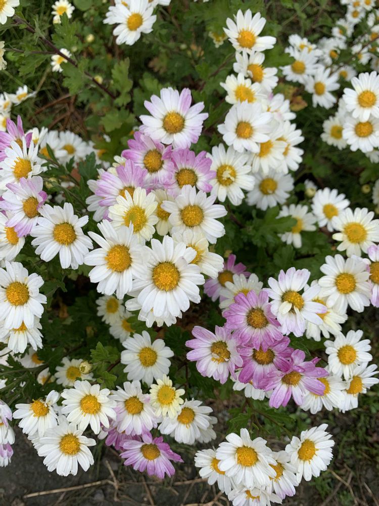 菊は白ばっかりやのにあちこちピンク🩷になってる真冬が来たらきっと枯れてるよ😅😇今日は仏壇に菊お供えしたよ🤗💕
