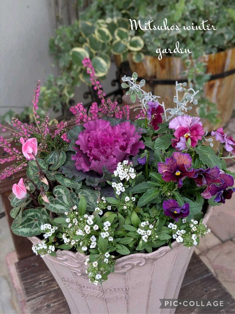 お正月🎍も兼ねての寄せ植え 葉牡丹メインでピンク系💗でまとめて
