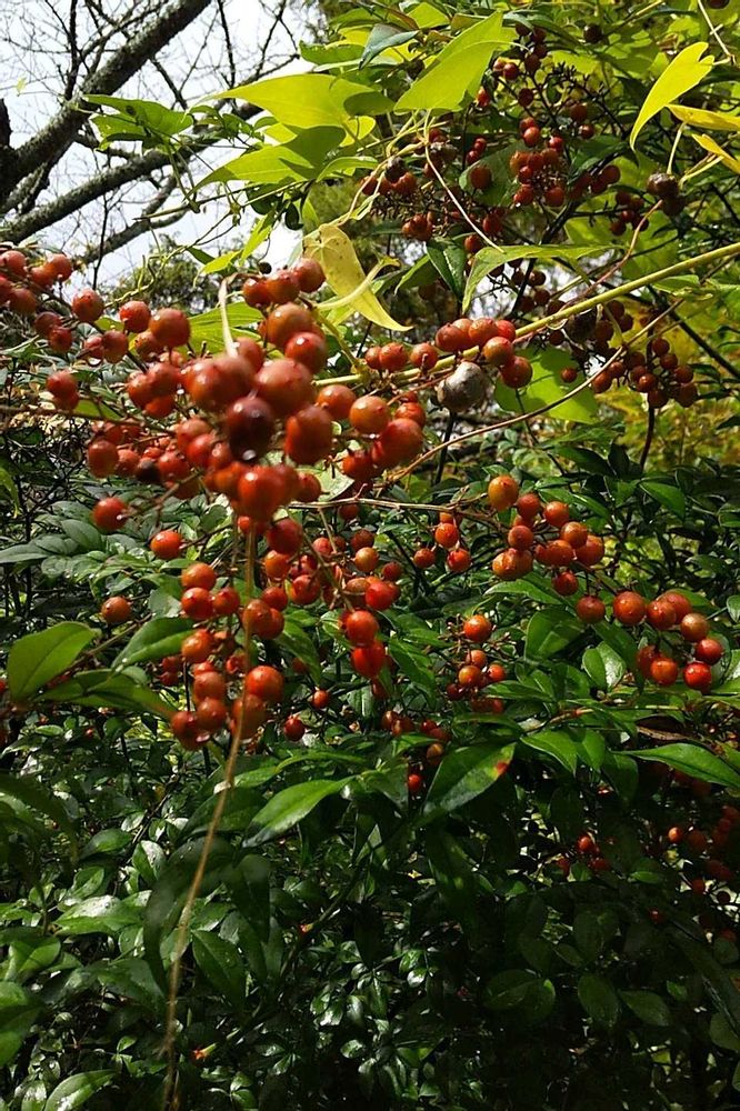 赤く色づき始めた南天〜古いお寺の境内で見かけました♥️