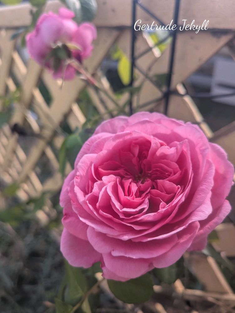 ガートルードジェキル🌹南のラティスに誘引してあるので花見えにくい所で咲いちゃうんですよ😅 でも久々に見える所で咲いてくれて香りも楽しんじゃいました🥰
