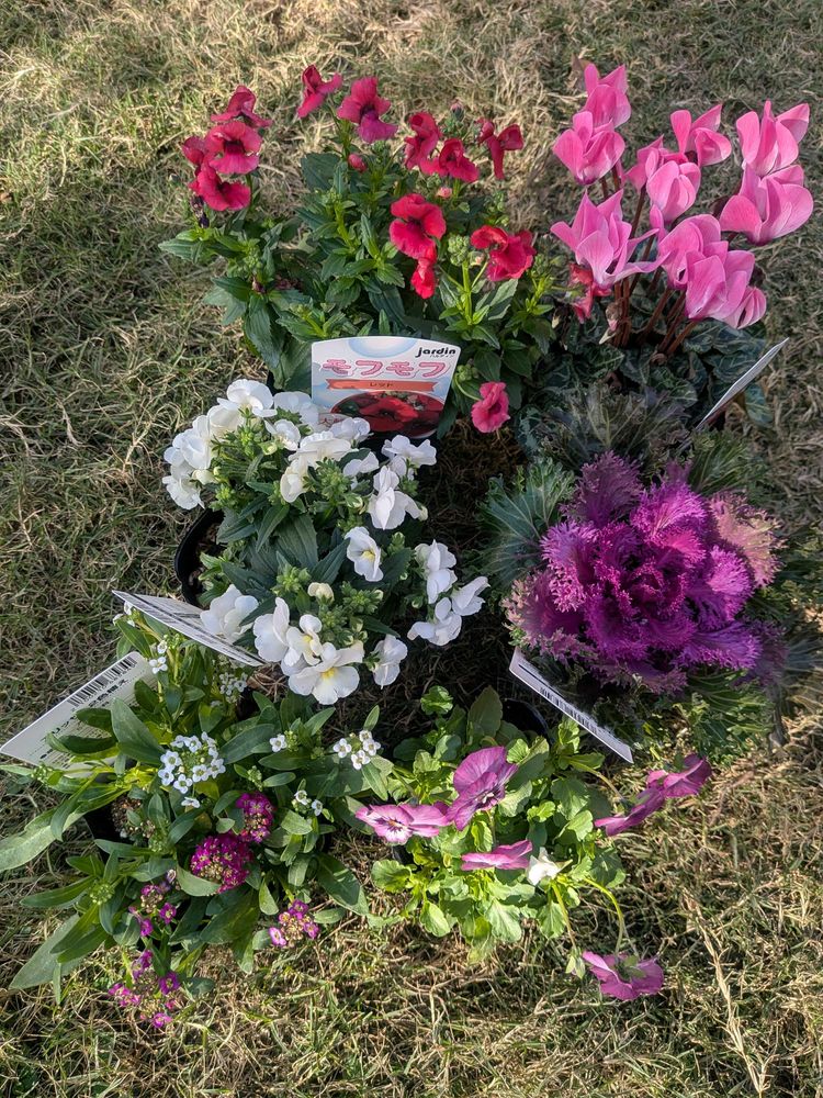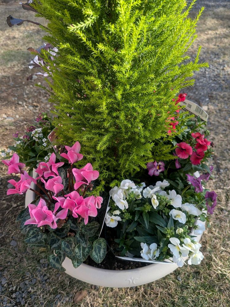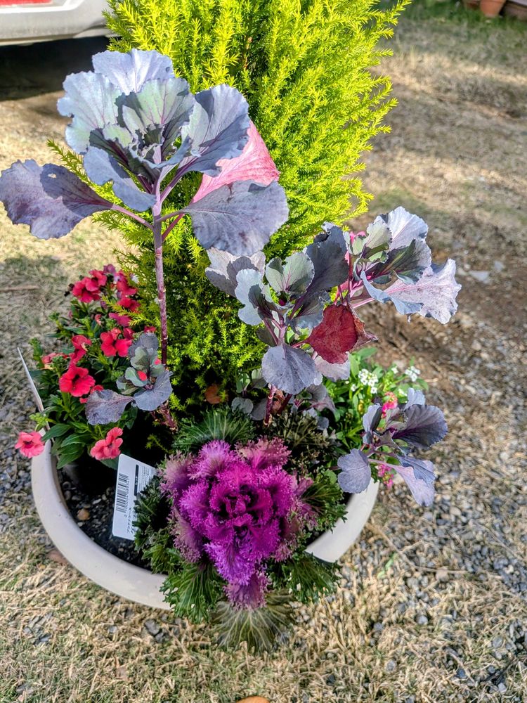 昨年寄せ植えしたゴールドクレストとミニ葉牡丹が夏越ししたので買い足して新たに作りました。