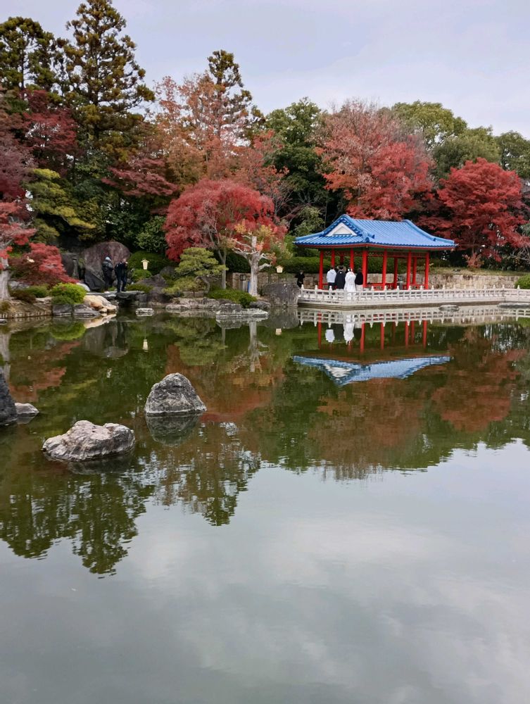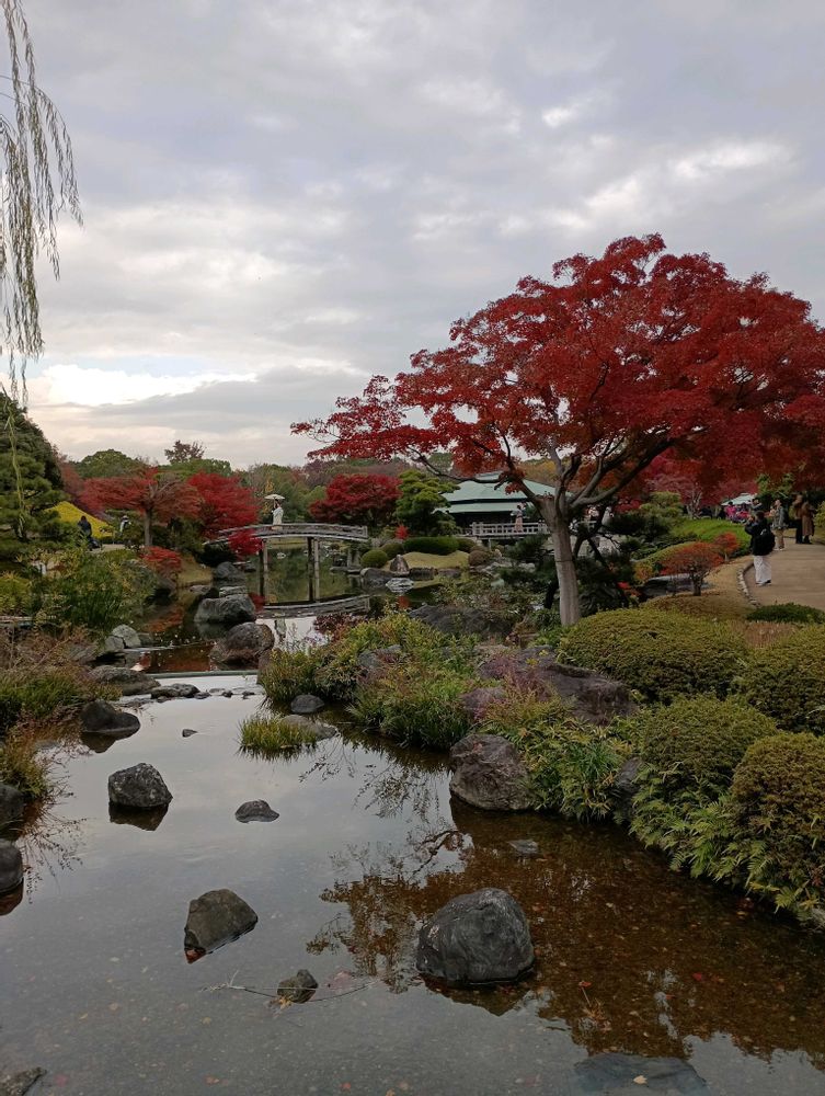 真っ赤な🍁🍁🍁本当に美しいわ。大仙公園の、日本庭園、素晴らしいよ。