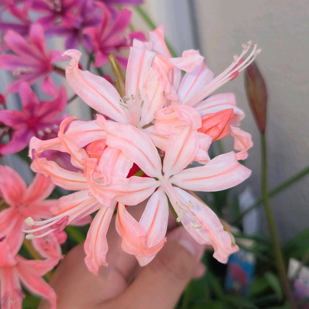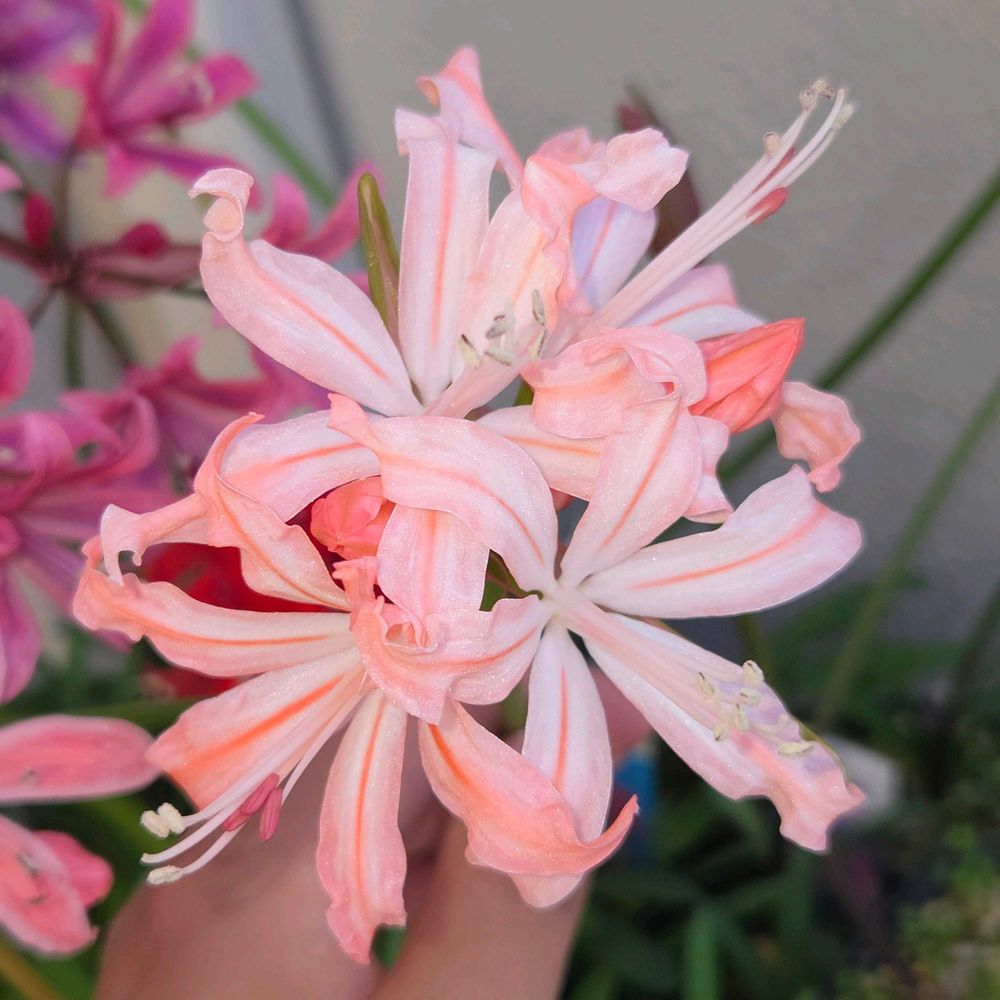 ネリネは今は紫系の品種が人気でお値段も高騰していますが、ピンクやサーモンピンク系の品種も個人的には好みです😍😍