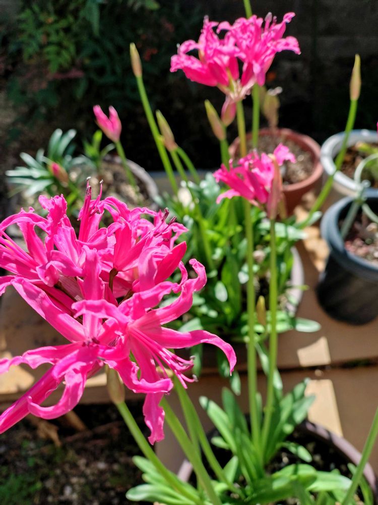 庭のあちらこちらでネリネが咲き出しているのを見つけ👀ての投稿です🤗
