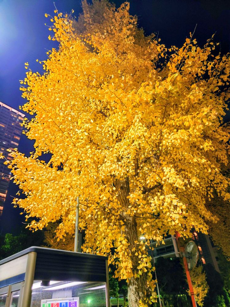 今週半ば、帰宅途中に見かけたイチョウ。