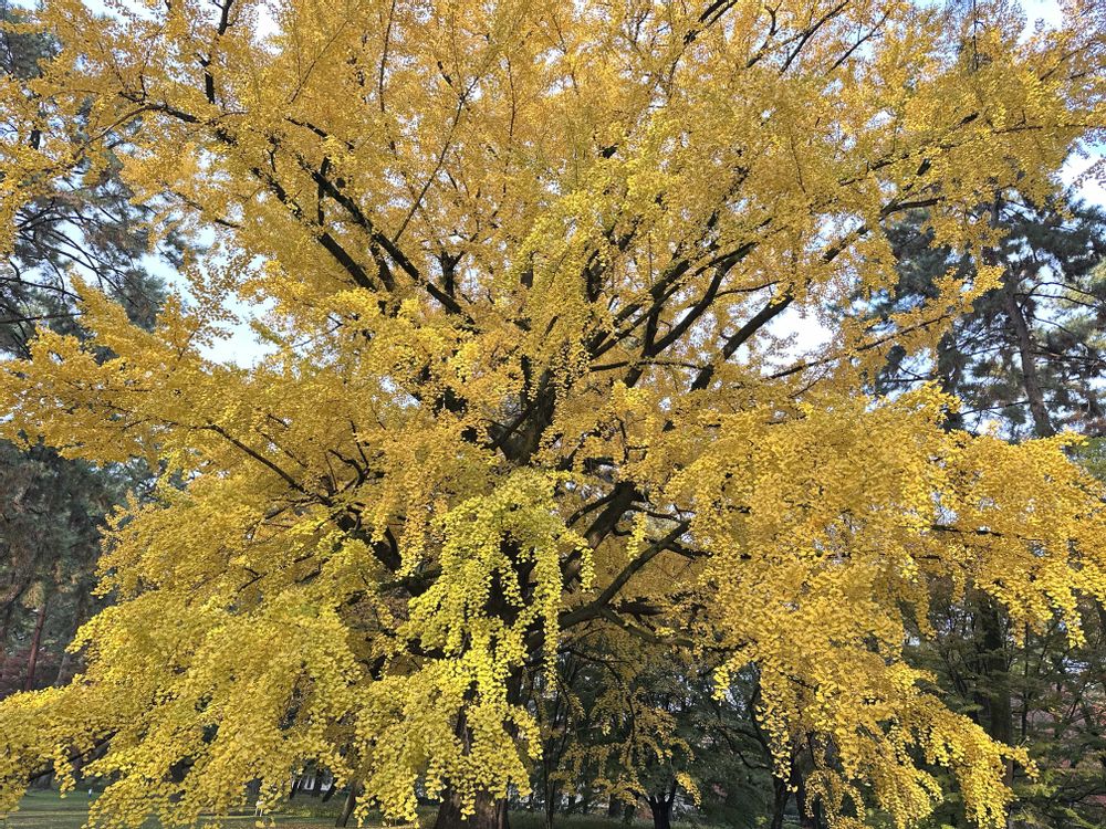 モミジ狩り、赤いモミジも美しいけど、黄金色のイチョウも美しいよね。地域の公園のイチョウです。