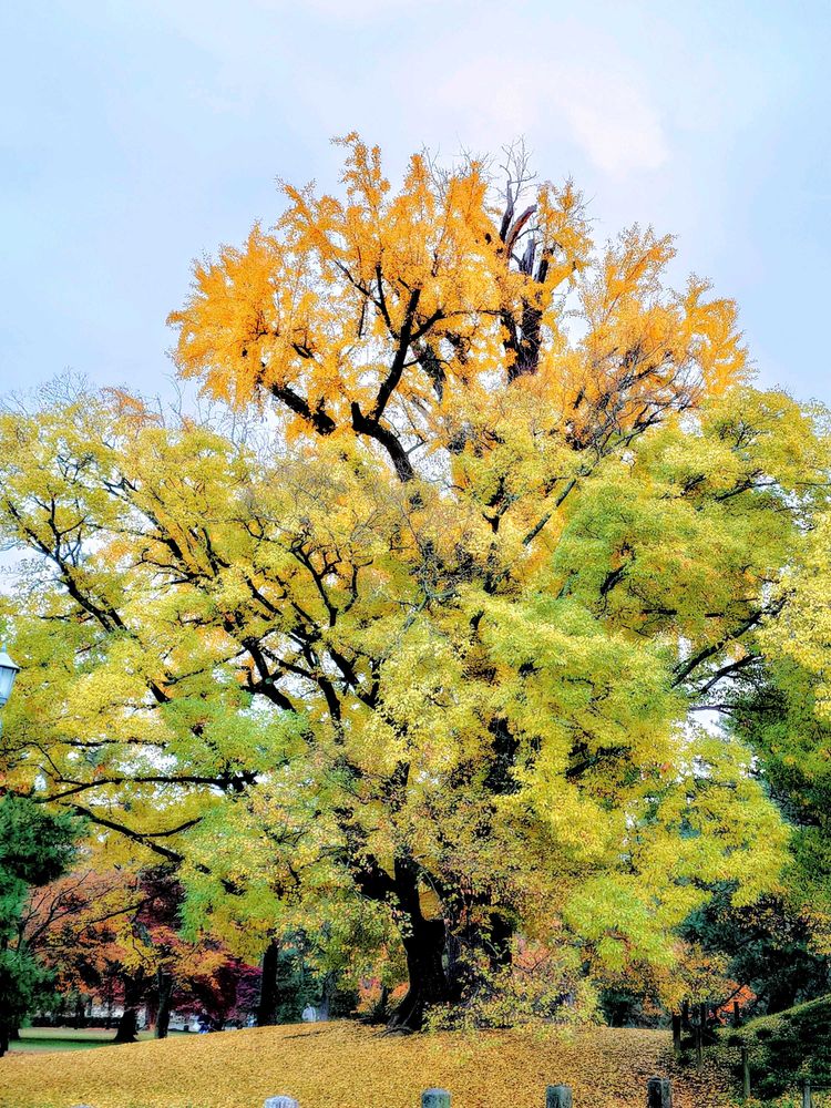30年ほど前に黄色い絨毯が広がっていた御所のイチョウを見て感激した覚えがあります😄