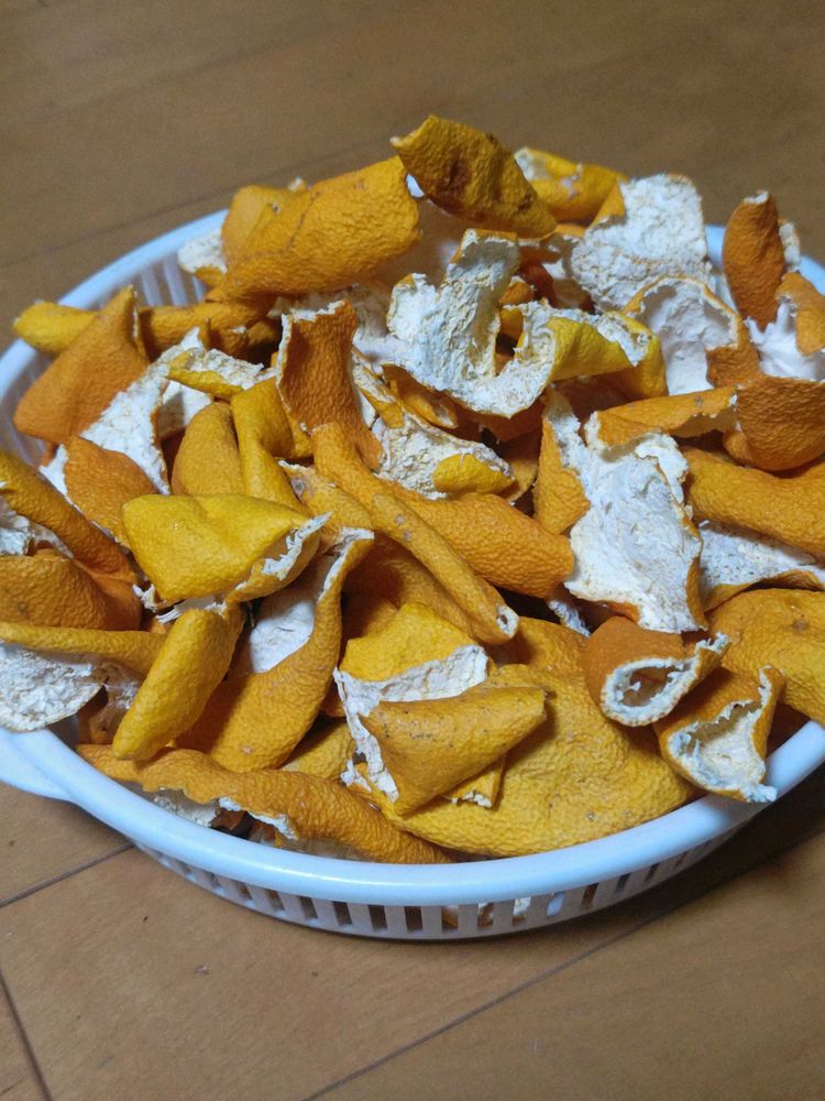 4枚めは、ベランダで干すみかんの皮。乾燥して細かく砕いて、土壌改良に公園で使う。土壌のpH調整、保水性の向上・・・。色々効果あるようで、皆で集めてます。
