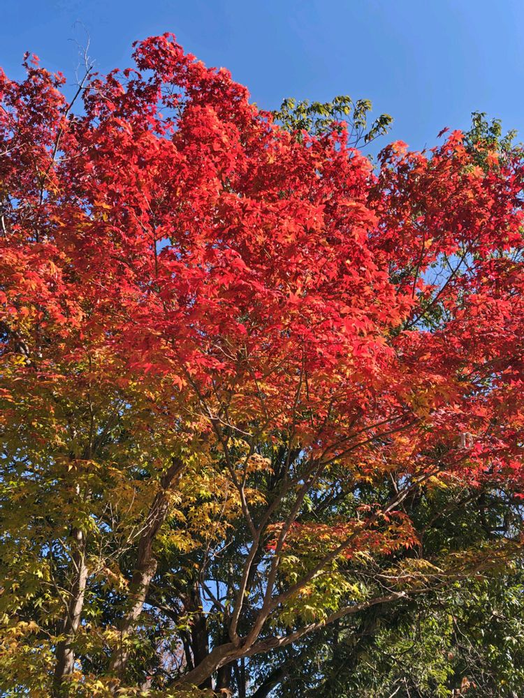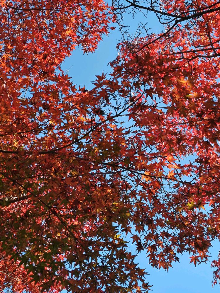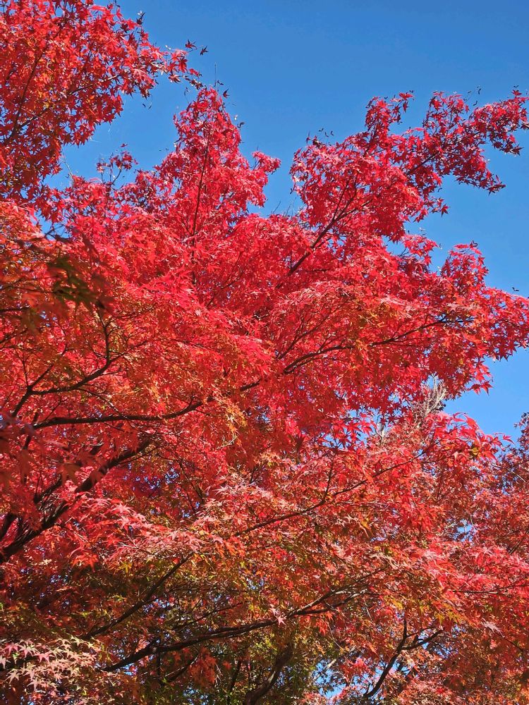 青空に真っ赤な紅葉🍁が映え、素敵な雰囲気やね🎵