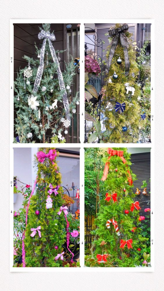4本のコニファーにそれぞれ色違いにして飾り付けしました🥰